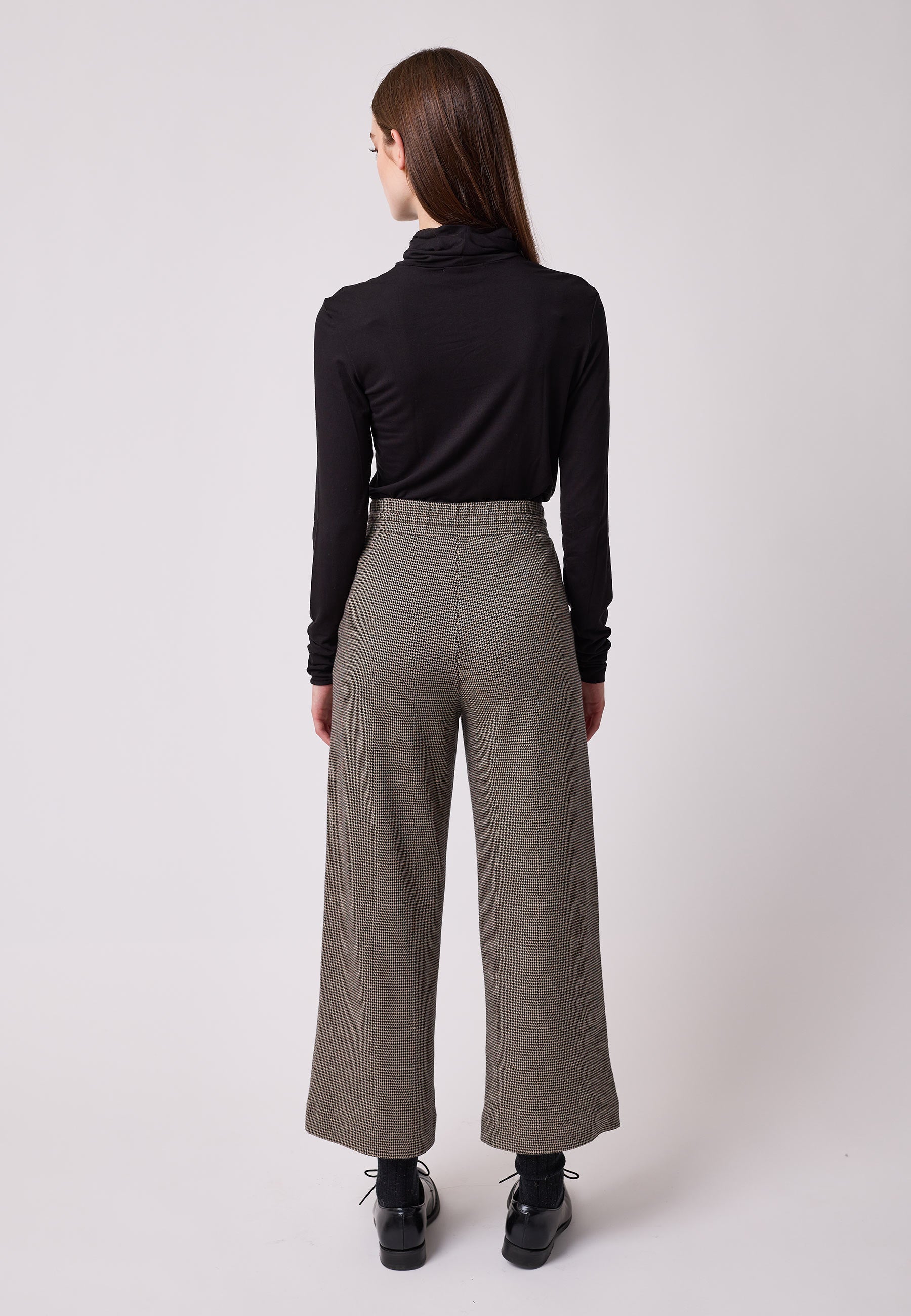 Notre jupe-culotte douillette en maille circulaire extensible est un véritable atout, notamment pour son confort. Sa taille élastique confortable avec cordon de serrage assure un ajustement parfait, tandis que ses poches latérales ajoutent une touche pratique. Son jacquard subtil en fait un pantalon idéal au quotidien et lui confère une touche de sophistication. Sa coupe courte et large est ornée d'un passepoil fin créant un joli drapé à l'ourlet.