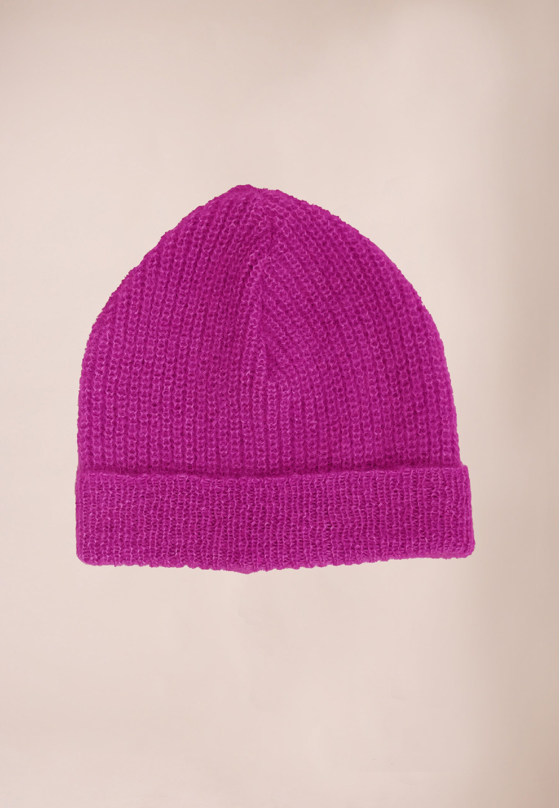 Unsere Mütze Solange vereint feine Naturfasern mit zeitlosem Stil. In leuchtendem Fuchsia setzt sie einen frischen Akzent an grauen Tagen – weich, leicht und wunderbar wärmend.