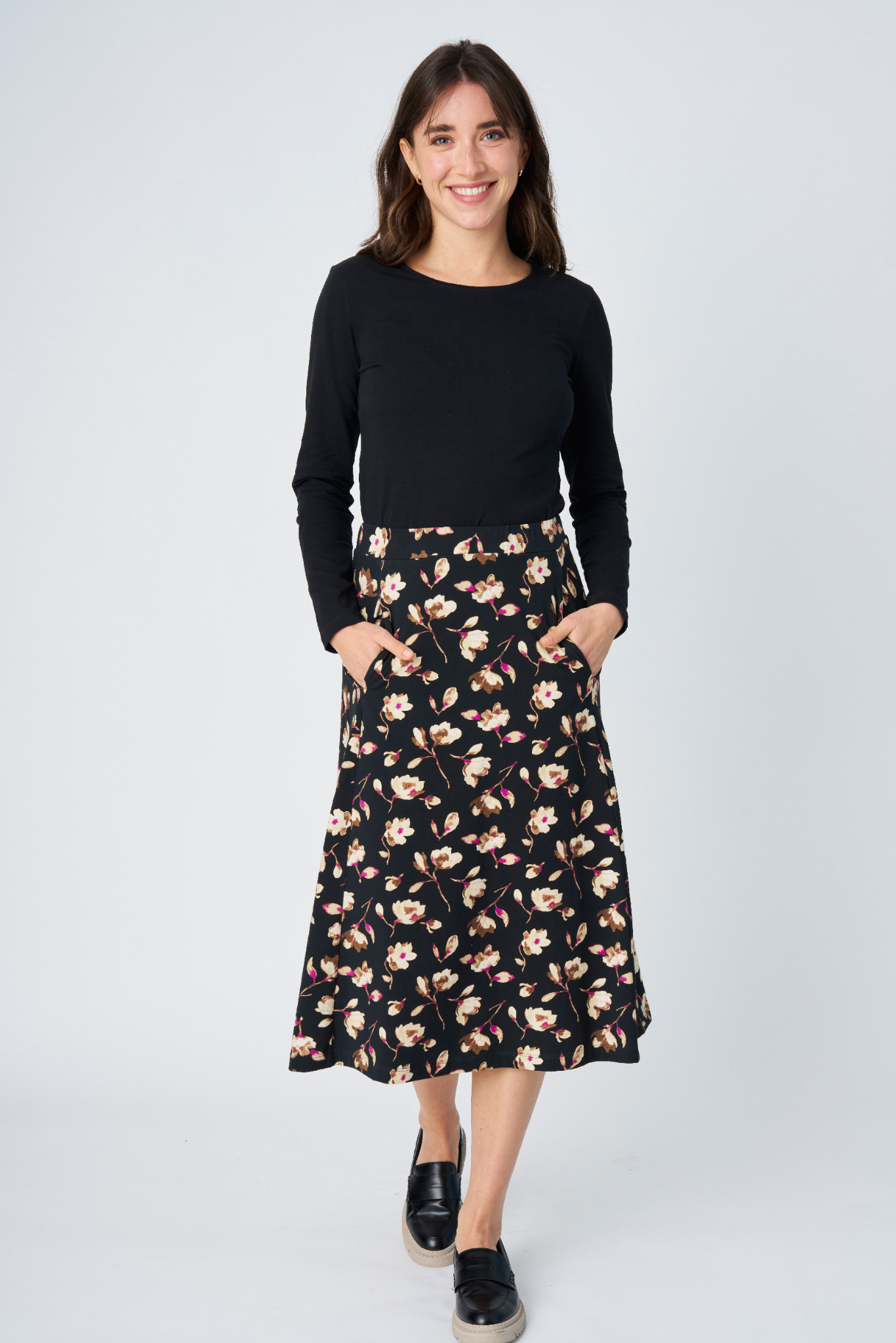 Notre jupe Nora présente un design sobre, agrémenté de petits détails. Ses coutures latérales orientées vers l'avant lui confèrent un joli ourlet ample et une jolie courbe au niveau du genou. Son confort est renforcé par sa taille élastique au dos, tandis que sa ceinture lisse à l'avant permet de rentrer facilement une chemise dans le pantalon.