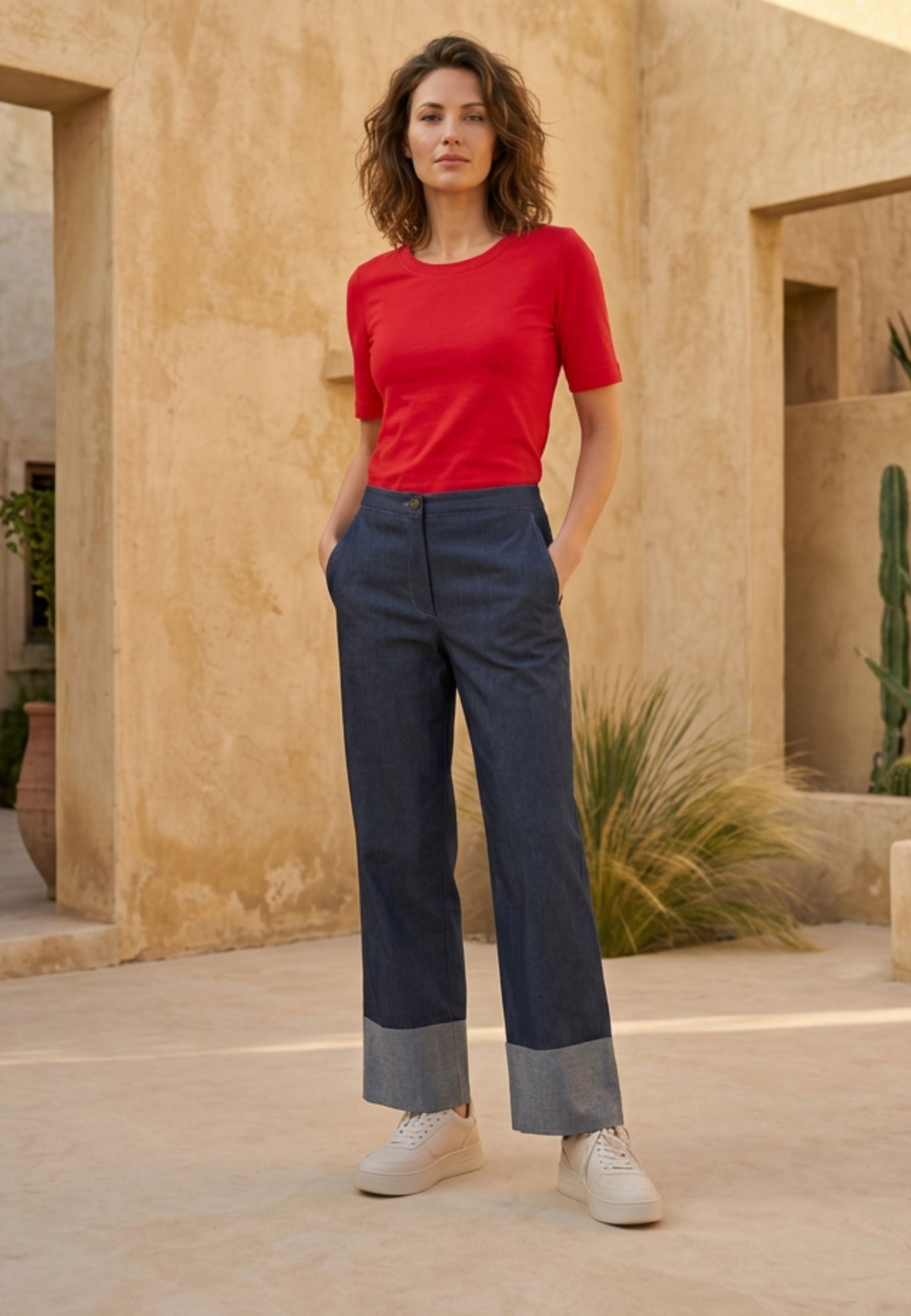 With their timeless cut and subtle design, Raquel can be combined in many ways – whether elegantly with a blouse and blazer or casually with a T-shirt and sneakers. Production adheres to high ecological and social standards (GOTS certification) and takes place in Europe under fair conditions.