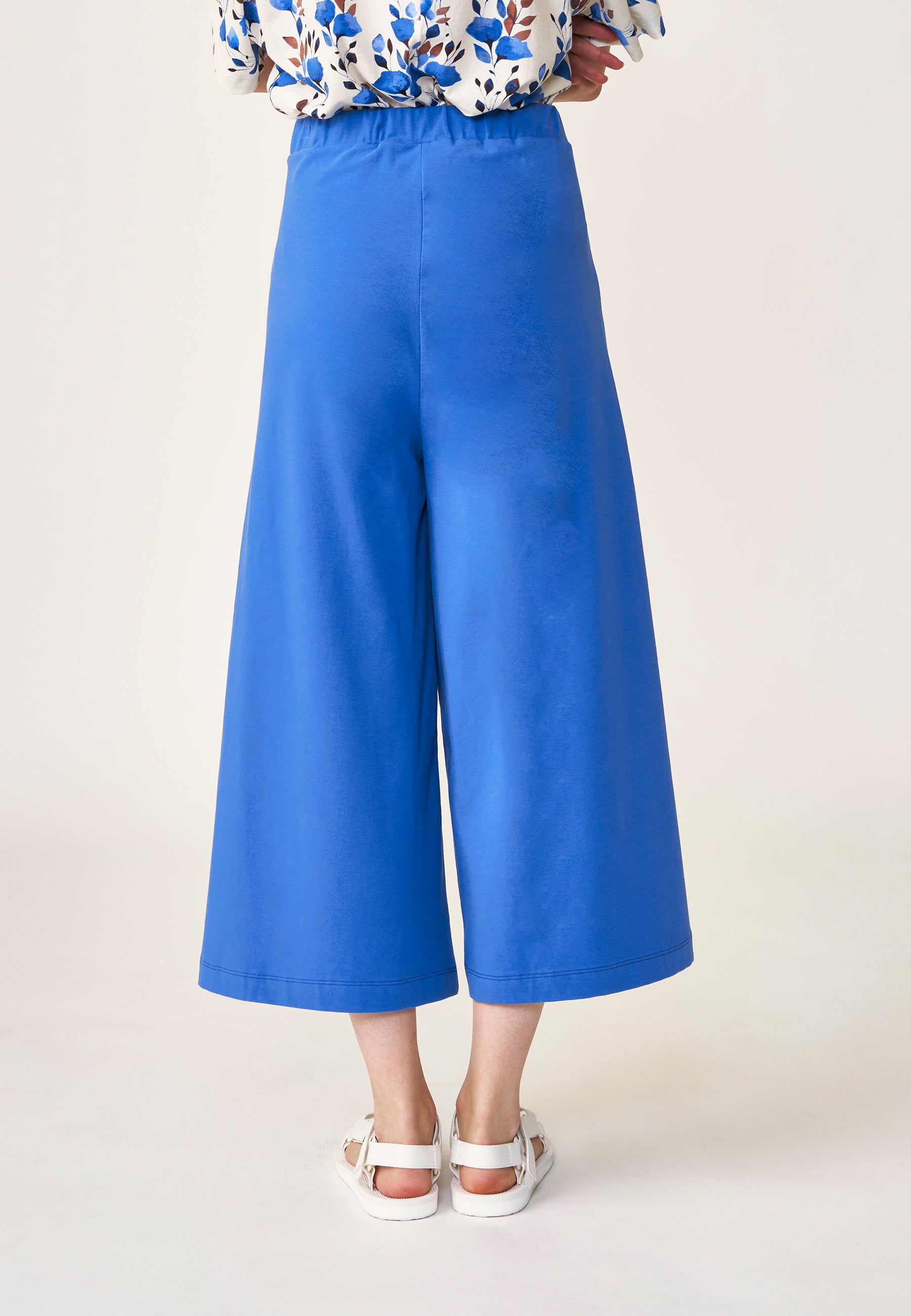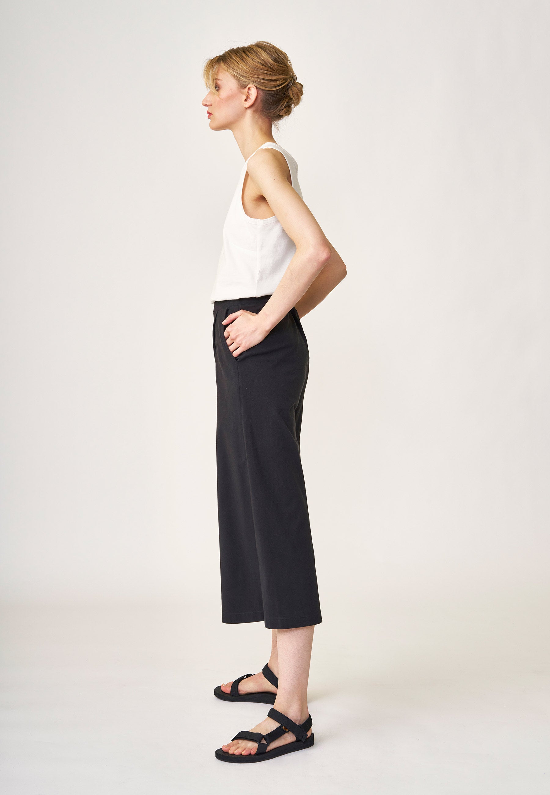 Our skirt-style culottes ensure comfortable yet striking moments. The overlapped leg adds interest to the cut while still maintaining the comfort of trousers. Comfortable side pockets and a soft elastic waistband support the comfortable fit of these calf-length trousers.